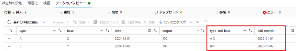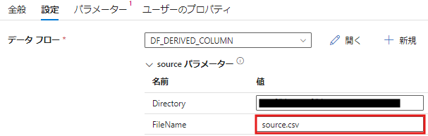 - データフロー内で派生列アクティビティを追加し、source.csv に列を追加します。