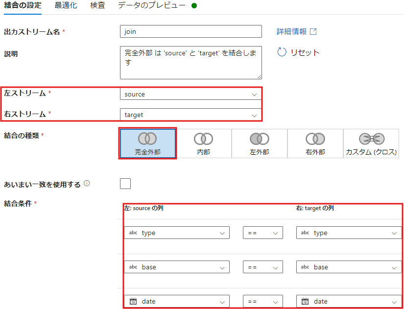 type,base,dateをキーとして結合します。 - 左ストリーム:source