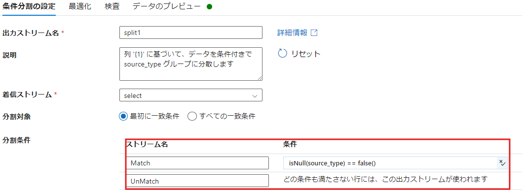 「どの条件も満たさない行には、この出力ストリームが使われます」