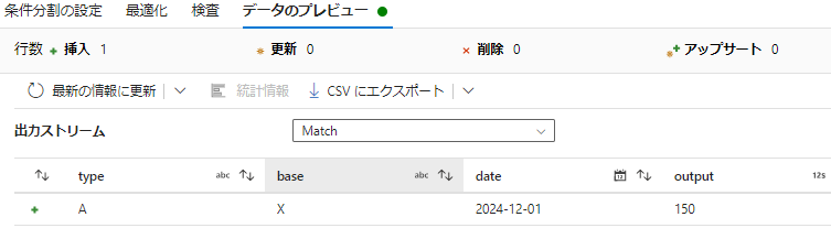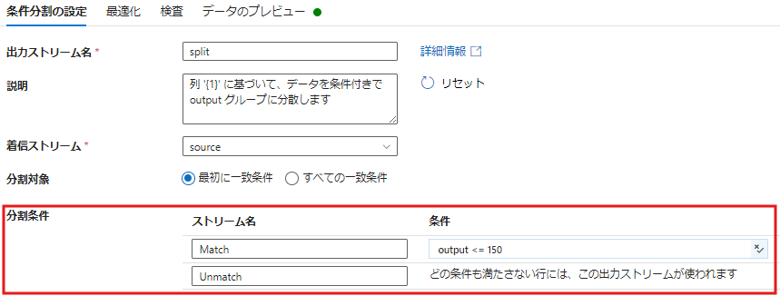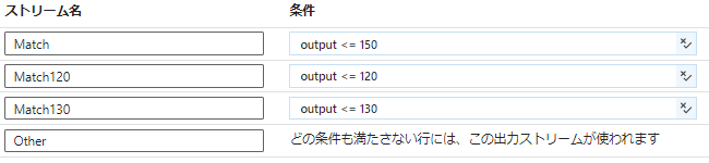 - ストリーム名「Match」が「output <= 150 (outputが150以下)」