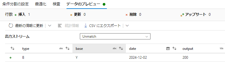 - ストリーム名「Unmatch」が「どの条件も満たさない行には、この出力ストリームが使われます」